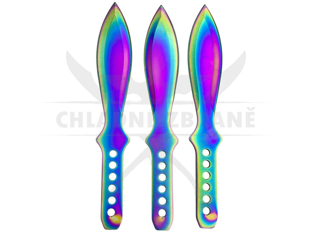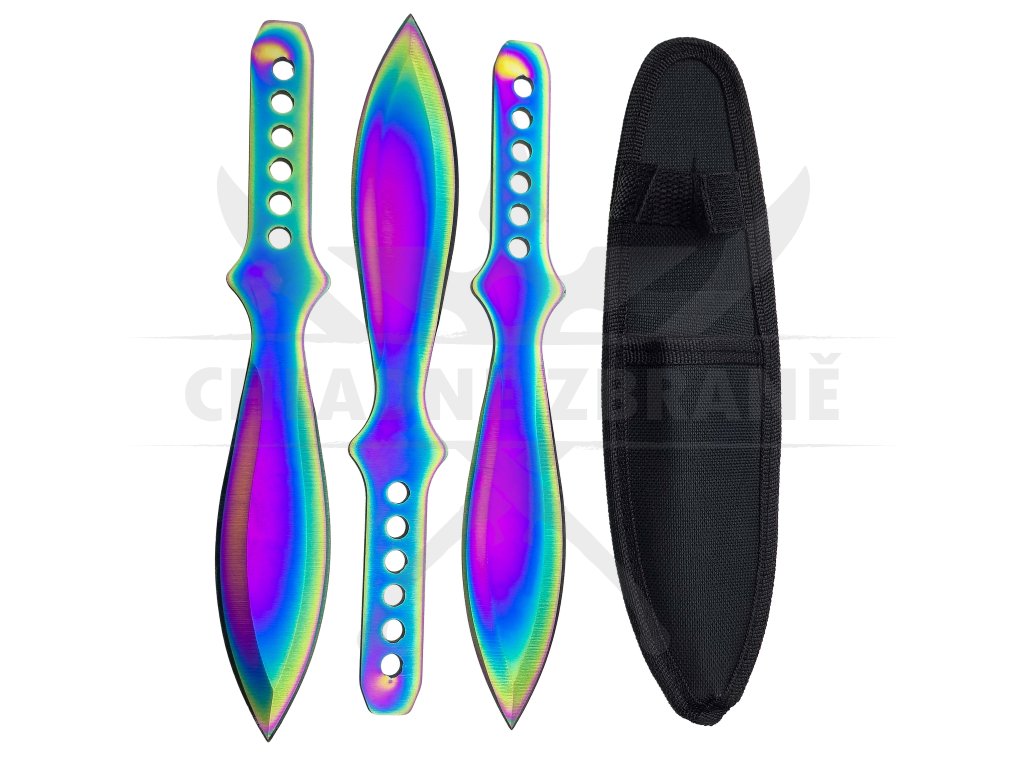 Vrhací nože typu OSA již velice dobře znáte z našeho e-shopu. Nyní Vám přinášíme sadu těchto 3 vrhacích nožů stejné velikosti v duhové barvě.