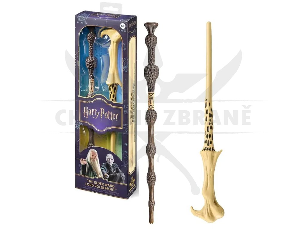 Voldemortova hůlka – elegantní, zahnutá, s tvarem připomínajícím kost. Působí stejně chladně a nebezpečně jako její majitel.