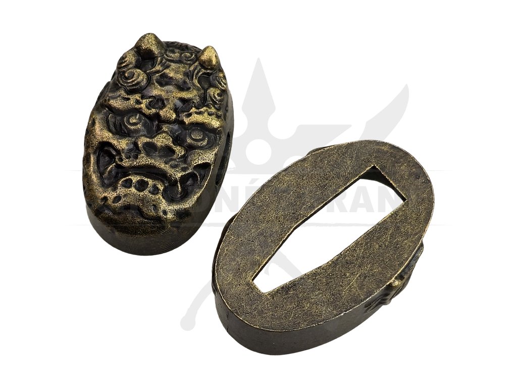 Sada fuchi a kashira představuje elegantní způsob, jak dodat samurajskému meči osobitý charakter. Každý pár kombinuje tradiční japonské motivy a detailní reliéfní zpracování, které okamžitě přitáhne pozornost a zvýrazní estetiku celé rukojeti.