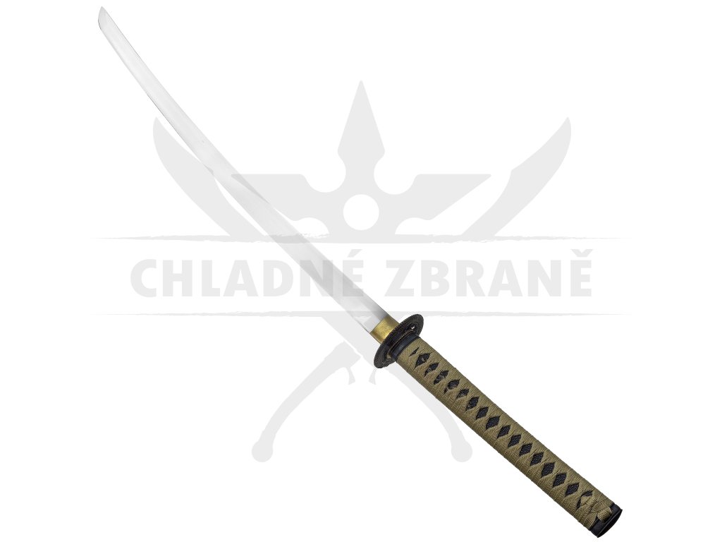 - Rukojeť (tsuka): imitace rejnočí kůže, béžové opletení ito s černými vložkami