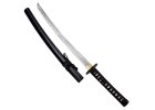 Luxusní wakizashi ( wakizaši ) s ostrou čepelí z překládané oceli. V balení je i sada pro údržbu a černý háv společně s dřevěnou pochvou.