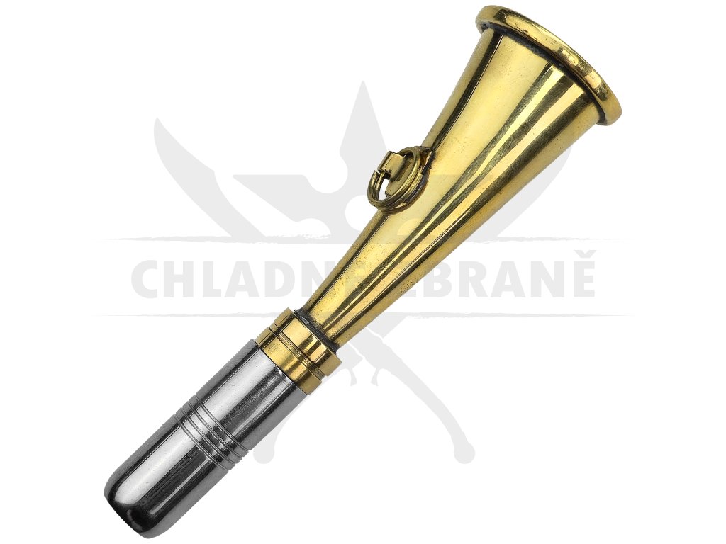 Velký roh o délce 34,3 cm a malý roh o délce 12 cm pokryjí různé potřeby – od hlasitého svolání až po decentní signál. Kovové očka umožňují zavěšení na opasek nebo připevnění k výstroji. Stylová kombinace funkce a elegance potěší každého milovníka myslivosti, reenactmentu i bushcraftu.