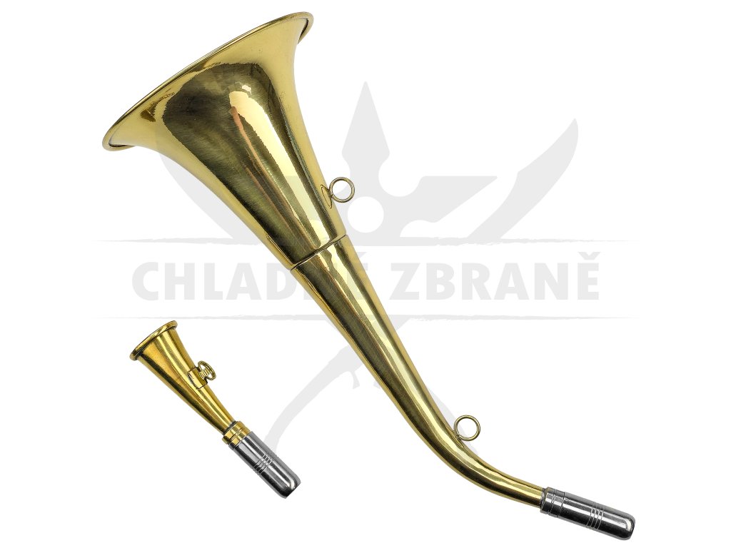 Sada dvou tradičních loveckých rohů, ideálních pro signalizaci, historické události nebo jako stylový doplněk do sbírky. Vyrobeny z leštěné mosazi, která zajišťuje nejen krásný vzhled, ale i výrazný zvuk.