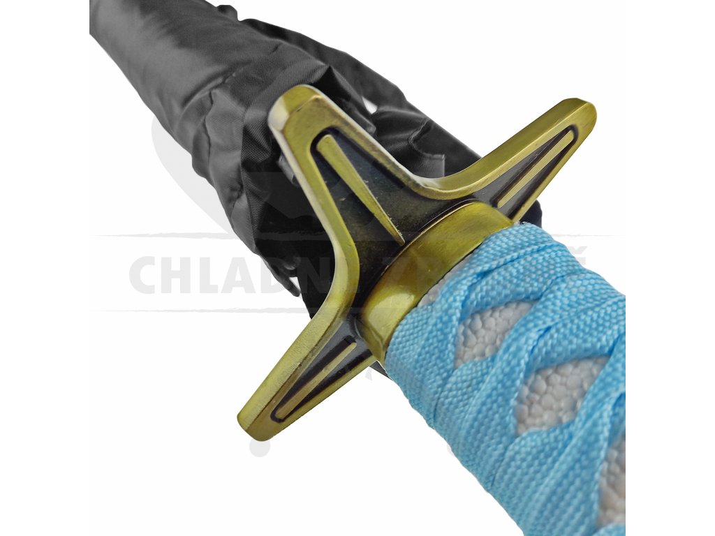Z přední strany rukojeti naleznete tsubu (záštita), která je zpracována přesně, jako originální záštita z anime. Na druhém konci se nachází kashira, též zhotovena podle originálu.
