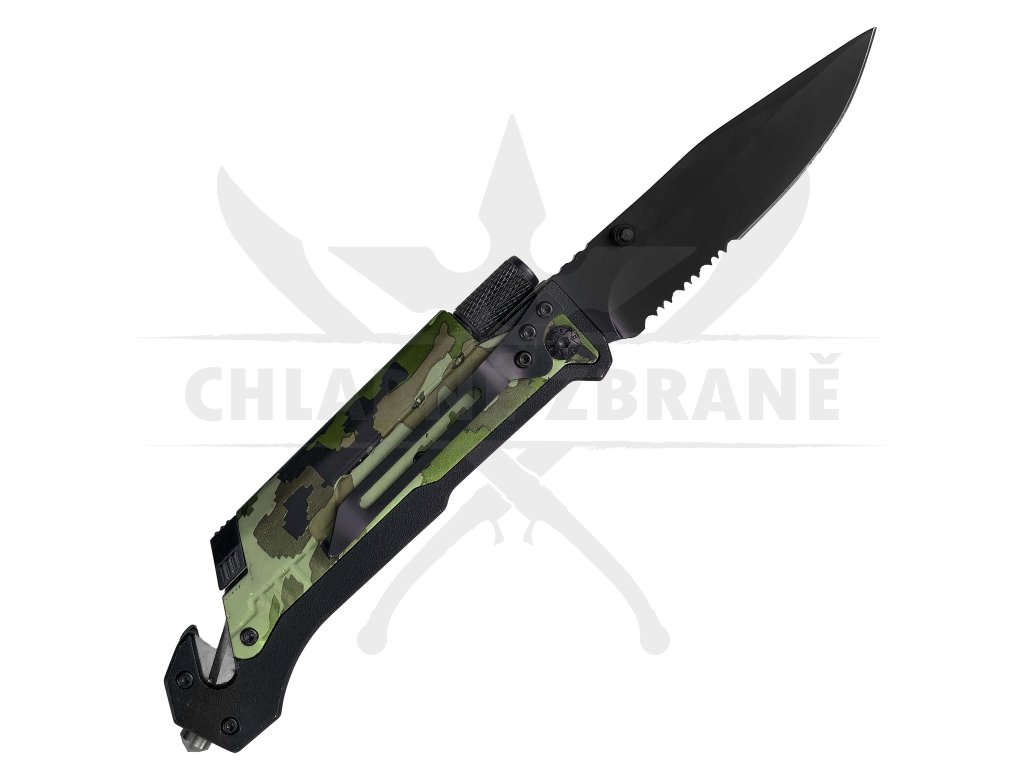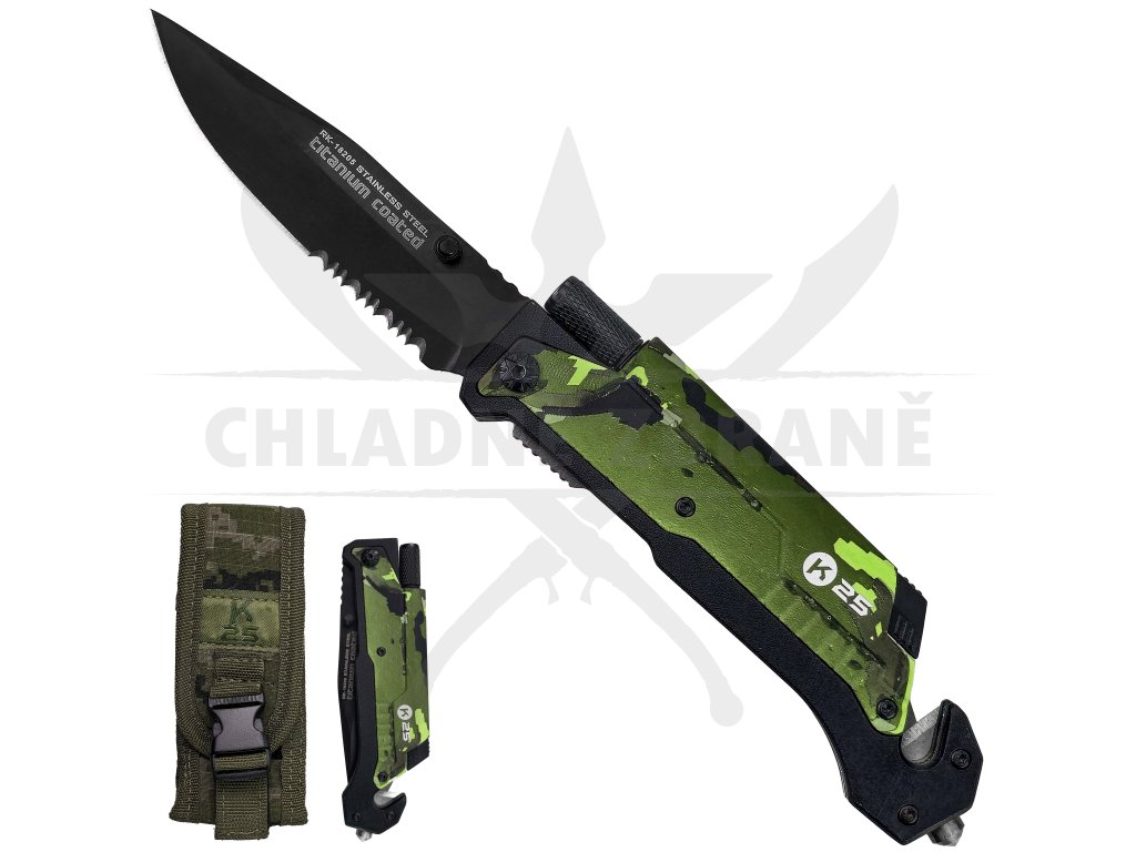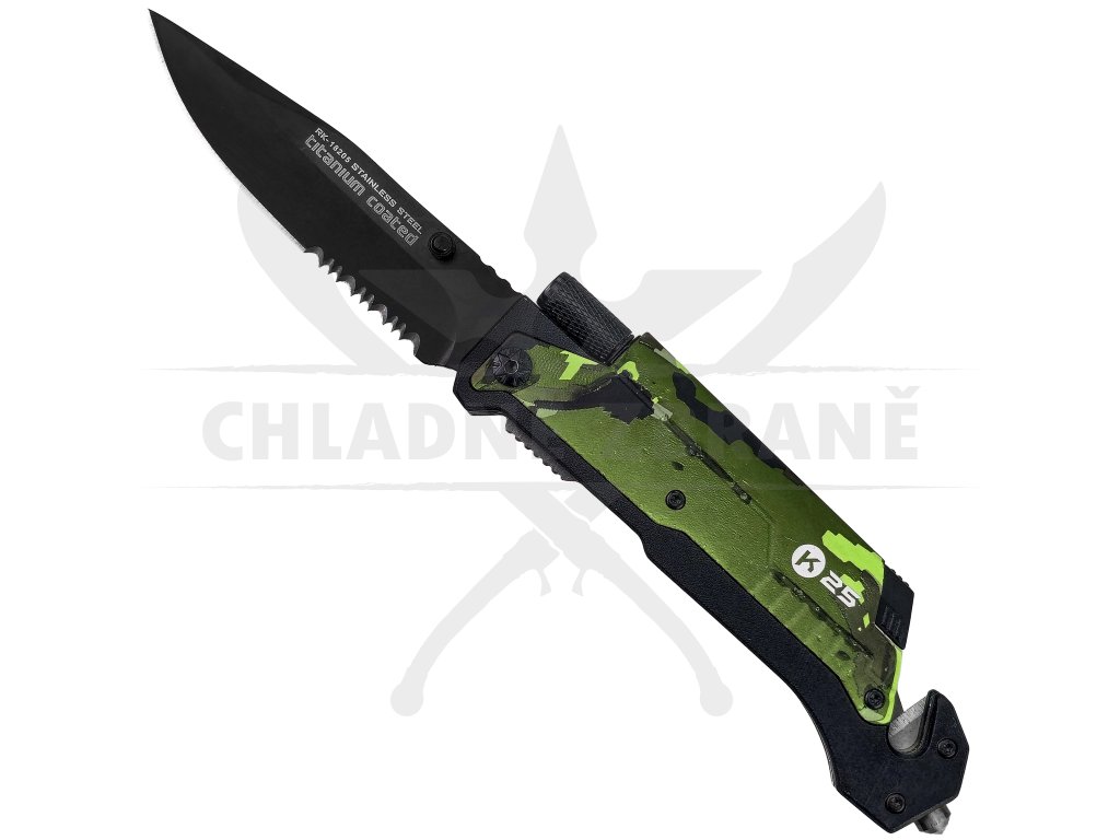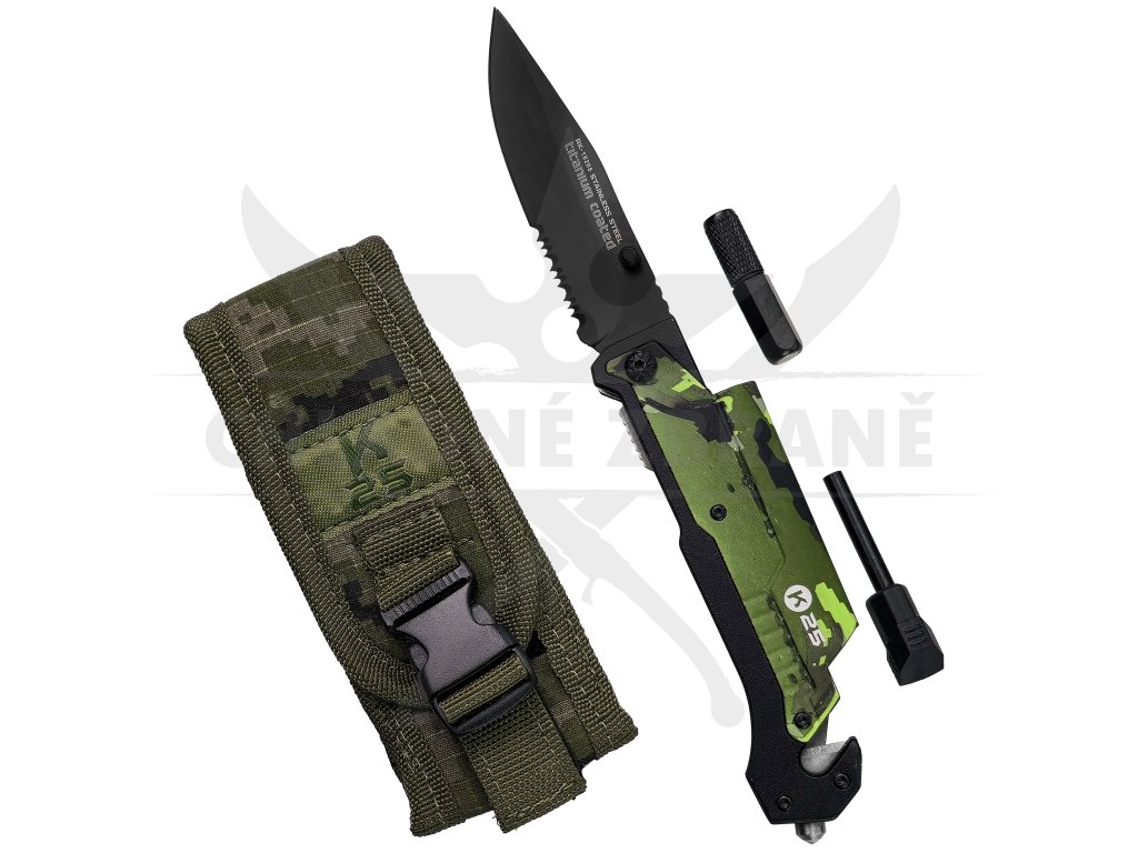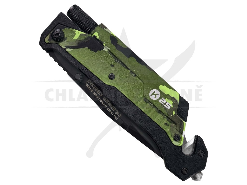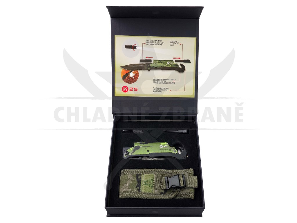 Taktický zavírací nůž "K25 ARMY RESCUE" s křesadlem a svítilnou
