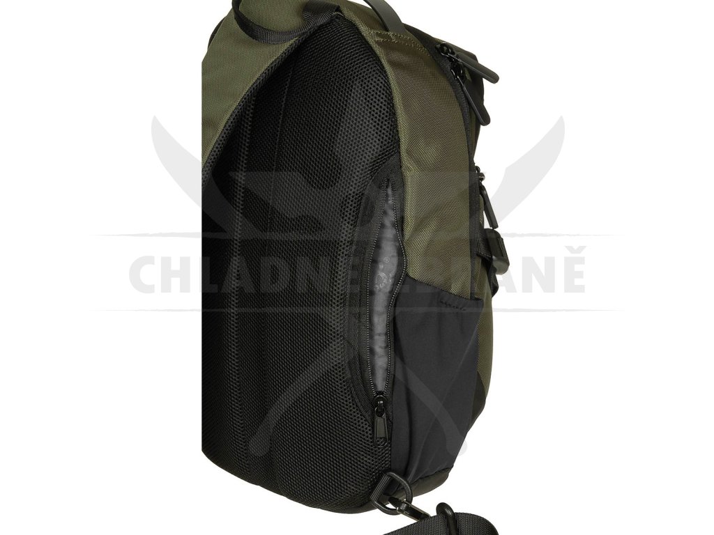 Taška nabízí hlavní prostornou komoru s vnitřním organizérem pro drobné vybavení, tři přední kapsy na zip a zadní plochou přihrádku ideální například na dokumenty. Po stranách najdete otevřené elastické kapsy, například na láhev nebo rukavice. Polstrovaná zadní část je kryta prodyšnou síťovinou pro lepší ventilaci při nošení.