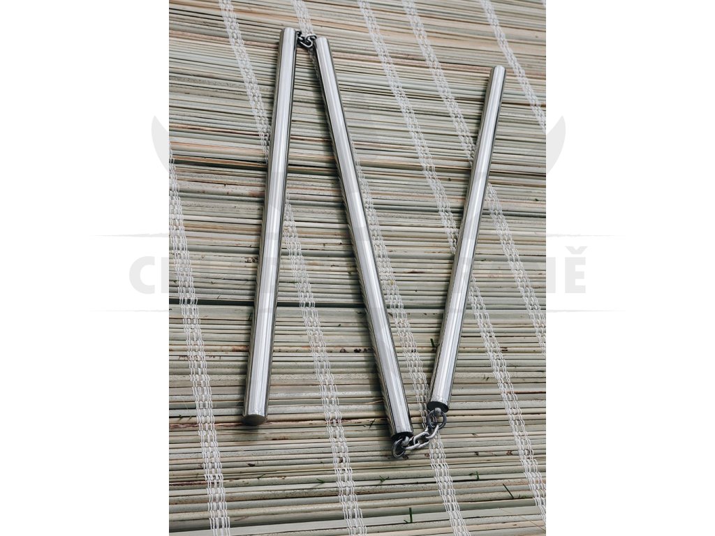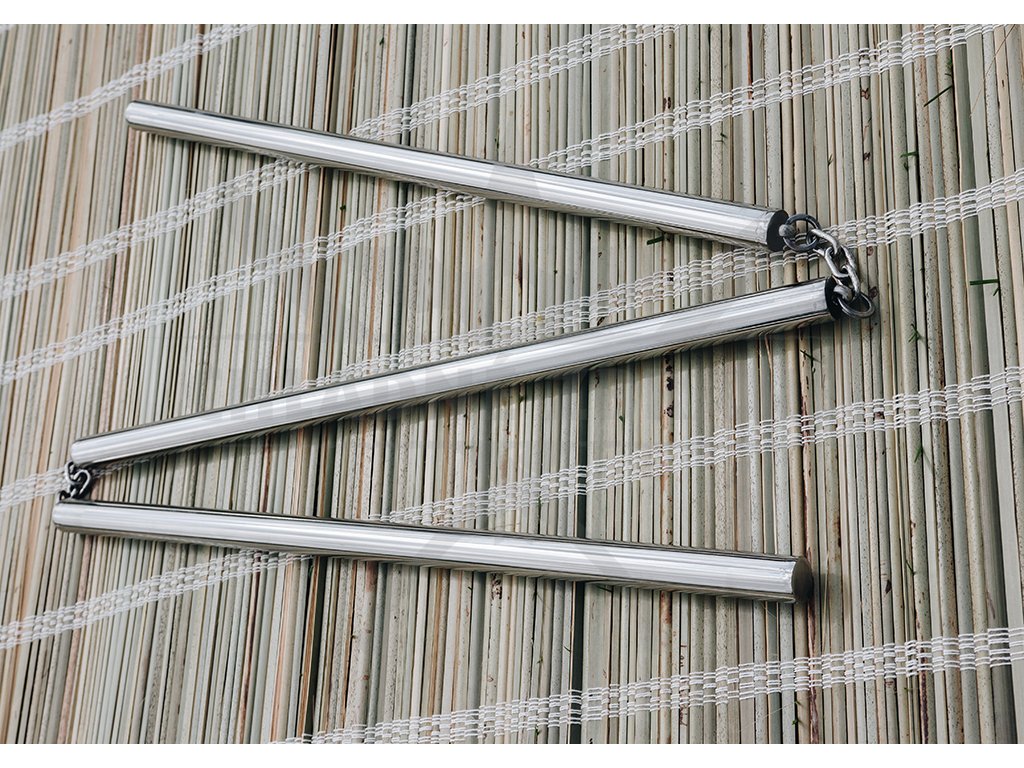 Naše trojité nunchaku "SANSETSUKON" jsou plně funkční! Vyrobeny jsou celé z nerezové oceli, spojeny pevně ocelovými řetězy! Odolná konstrukce a ocelový materiál zajišťuje účinný trénink.