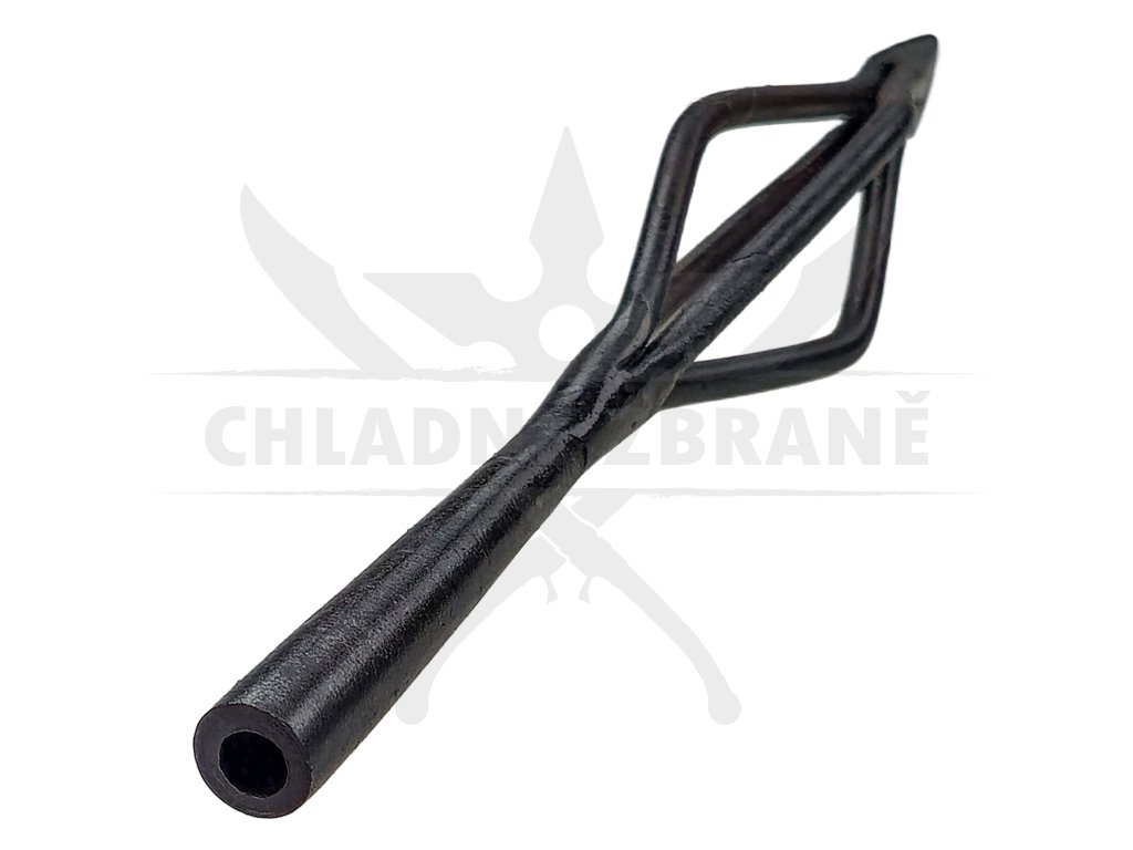 Válečný hrot šípu „CARBON BROADHEAD“ vychází z historických širokých hrotů používaných v období středověku pro maximální zásahovou plochu a účinnost. Charakteristický otevřený tvar s rozšířenými rameny zvyšuje řezný efekt a stabilitu letu při správném osazení. Díky celkové délce 16,1 cm působí robustně a je vhodný pro výrobu dobových šípů nebo reenactment.