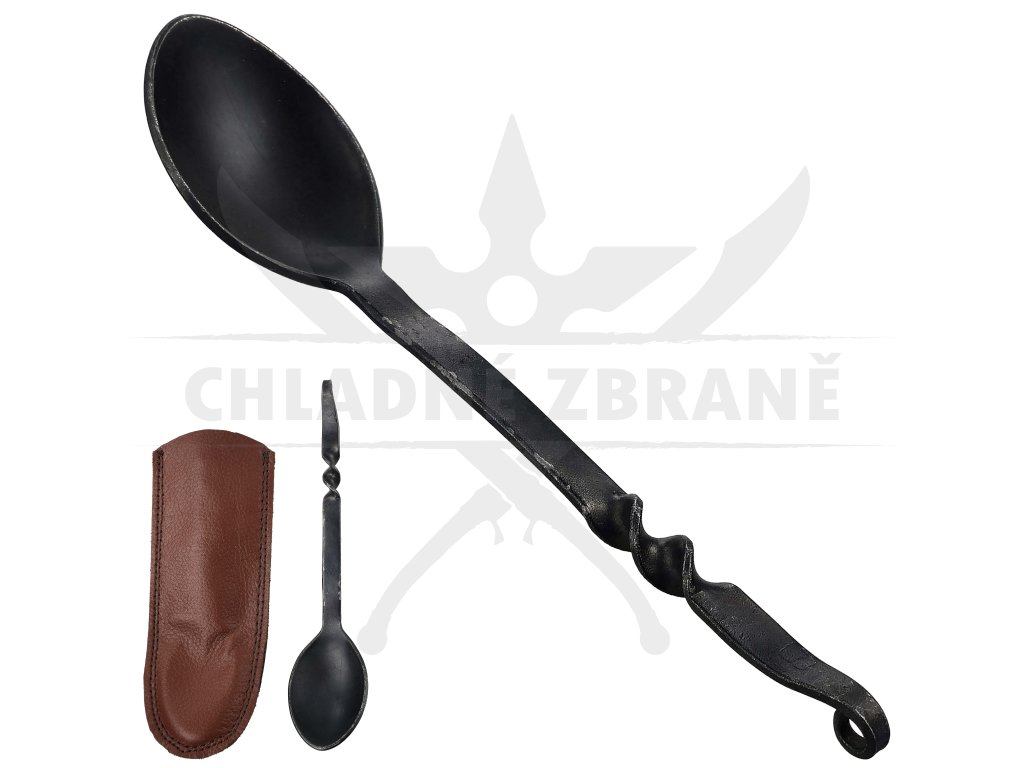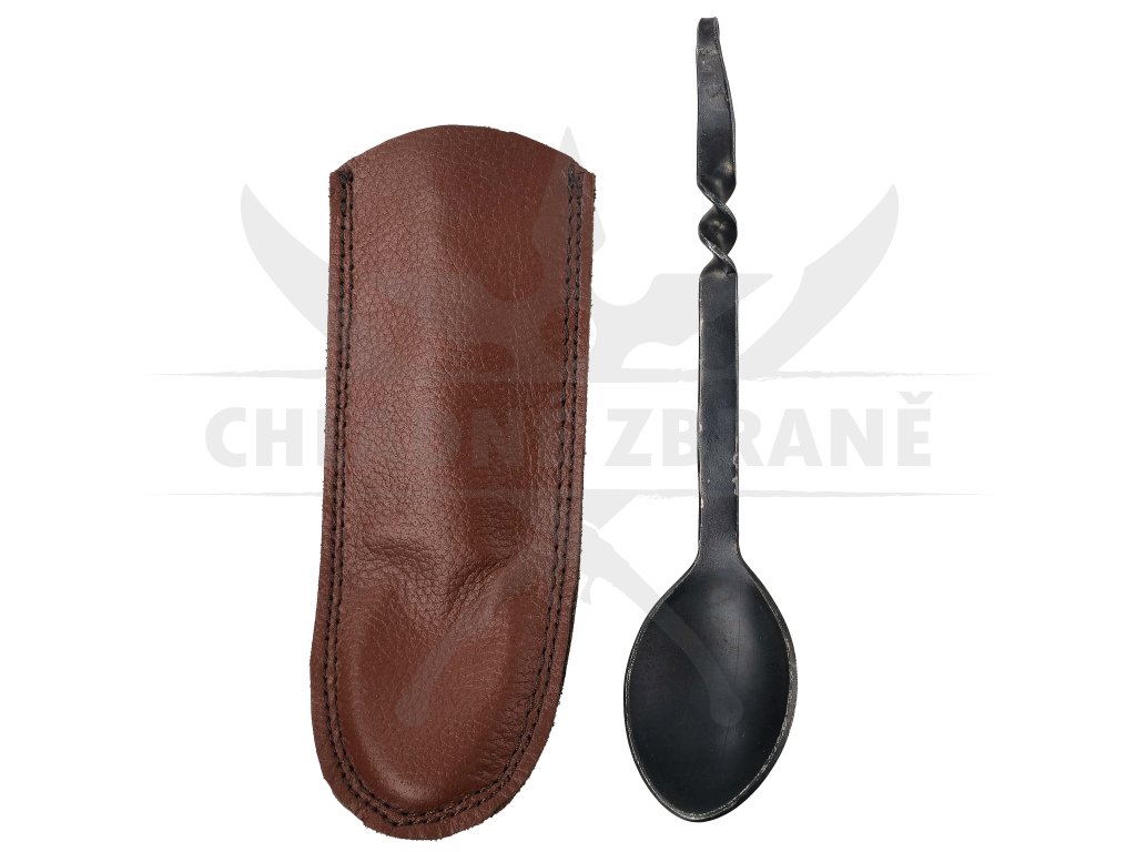 Velká kovaná lžíce "FORGED SPIRAL" s koženým pouzdrem