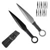 Sada vrhacích nožů typu kunai. Krásný design, rukojeť opletena červeným provázkem. Nerezová ocel 440C. Součástí balení je i pouzdro pro všechny 3 nože.