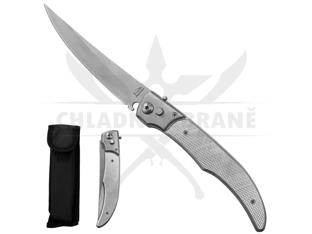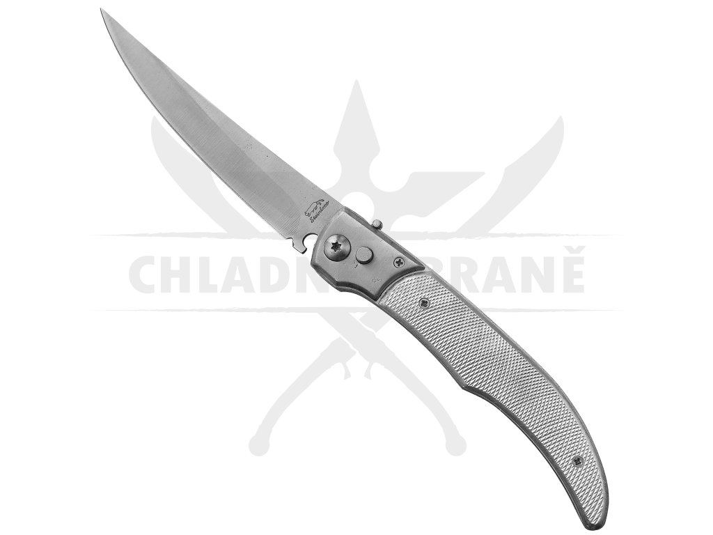 Vystřelovací nůž SILVER NOBLEMAN zaujme na první pohled elegantním stříbrným designem a štíhlými liniemi, které odkazují na klasické kapesní nože v moderním pojetí. Díky automatickému otevírání je čepel připravena k použití okamžitě, což ocení každý uživatel hledající spolehlivý EDC nůž pro každodenní nošení. Celokovová konstrukce zajišťuje pevnost a dlouhou životnost, zatímco plastové střenky s jemnou texturou přispívají k jistému úchopu.