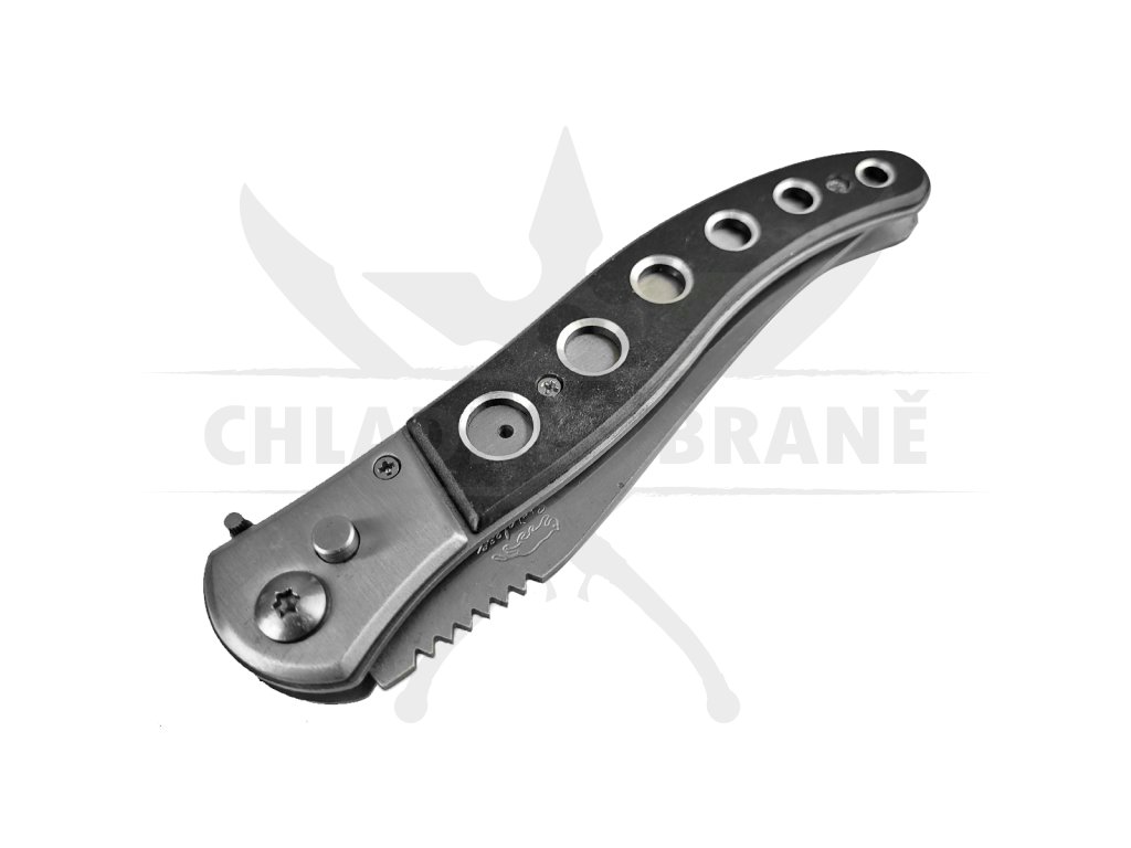 Rukojeť celokovového vystřelovacího nože "GODZILLA BLACK" je celočerná děrovaného designu. Vystřelovací nůž "GODZILLA BLACK" obsahuje bezpečnostní pojistku proti nechtěnému výstřelu (např. v kapse)!