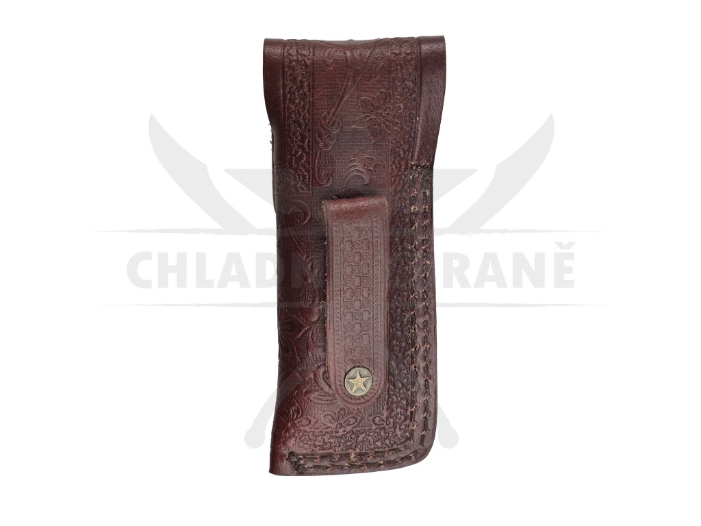 Součástí balení je kožené pouzdro s poutkem na opasek, které umožňuje pohodlné nošení a ochranu nože v terénu i při každodenním použití.