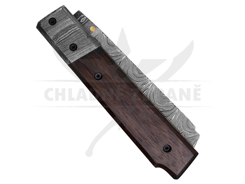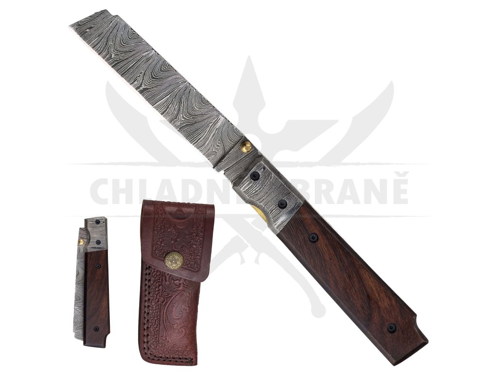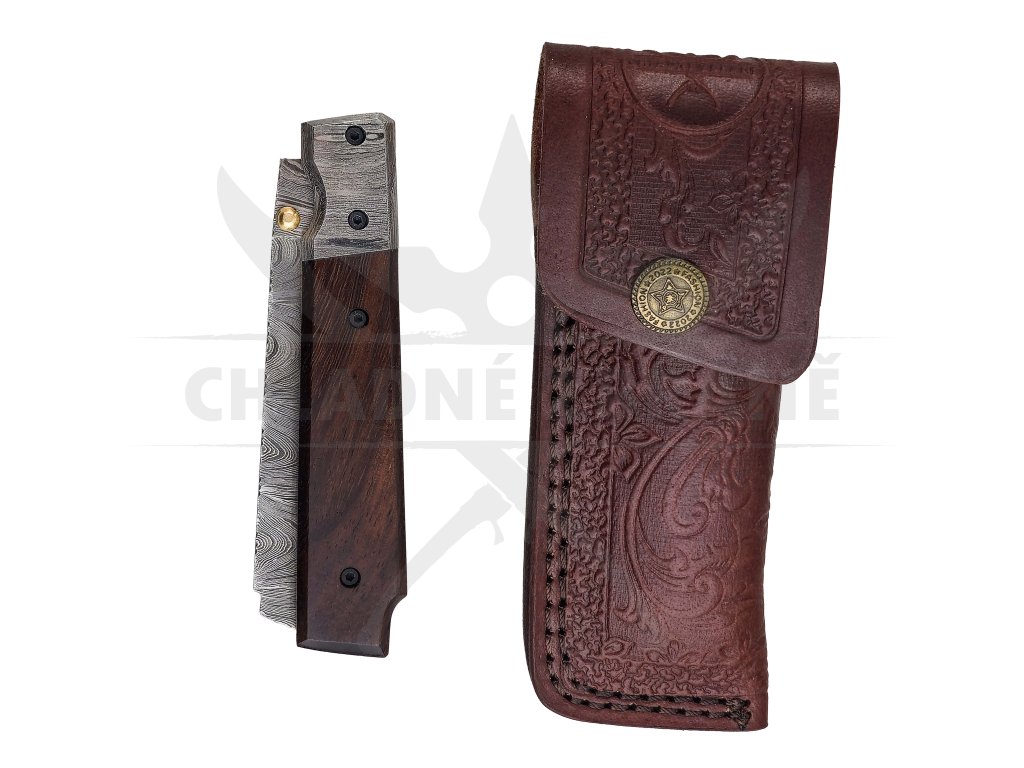 Zavírací damaškový nůž "ROSEWOOD EDGE" s koženým pouzdrem