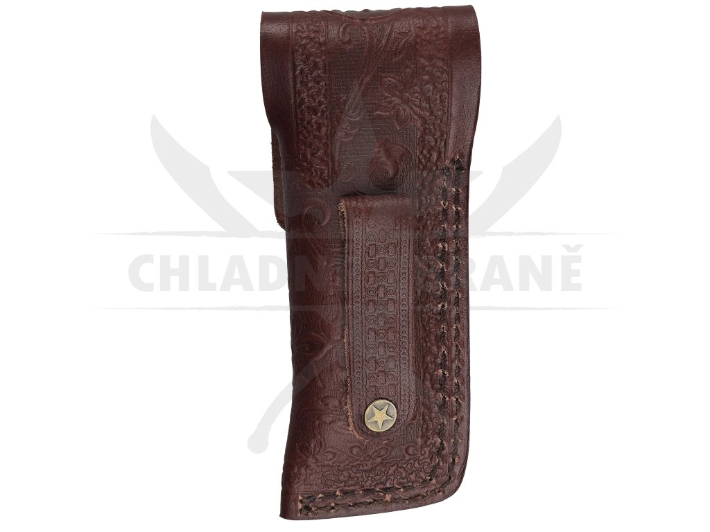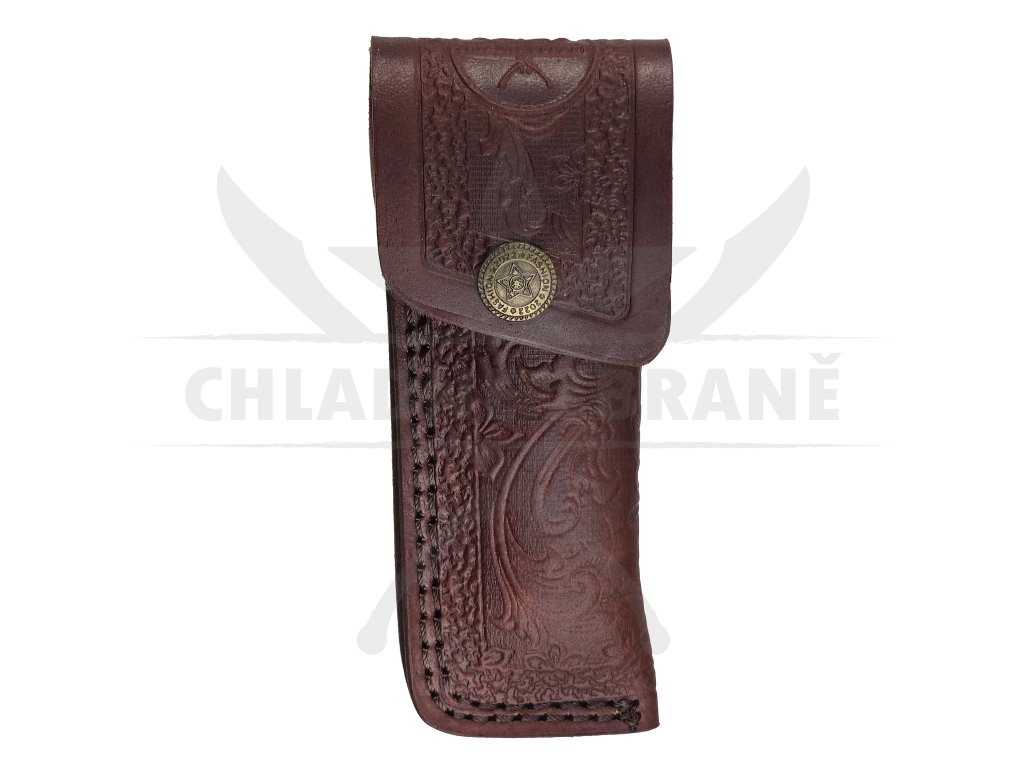 Součástí je kožené pouzdro s poutkem na opasek, které chrání nůž a umožňuje jeho snadné nošení v terénu. Tento kousek je ideální volbou pro sběratele, milovníky damaškových vzorů i pro každodenní použití.