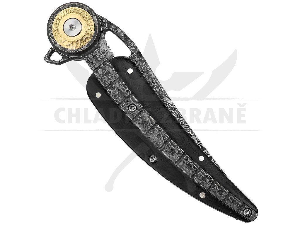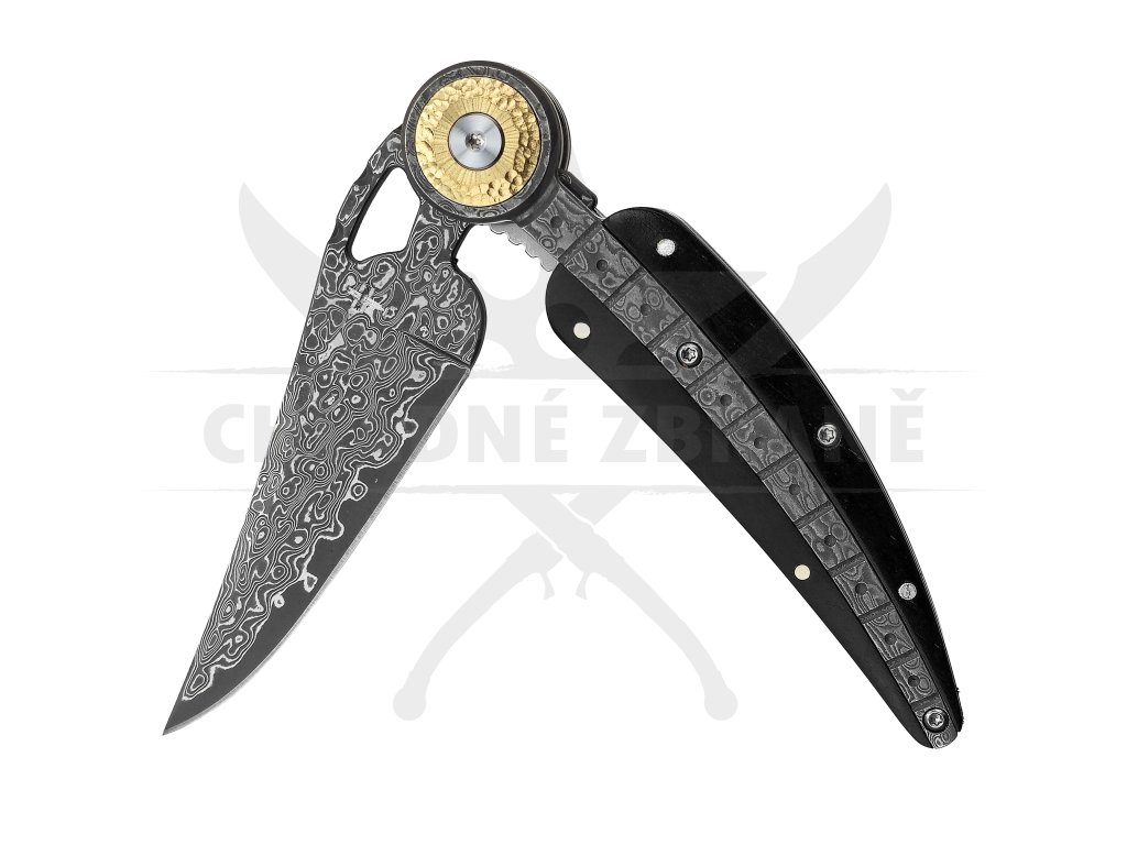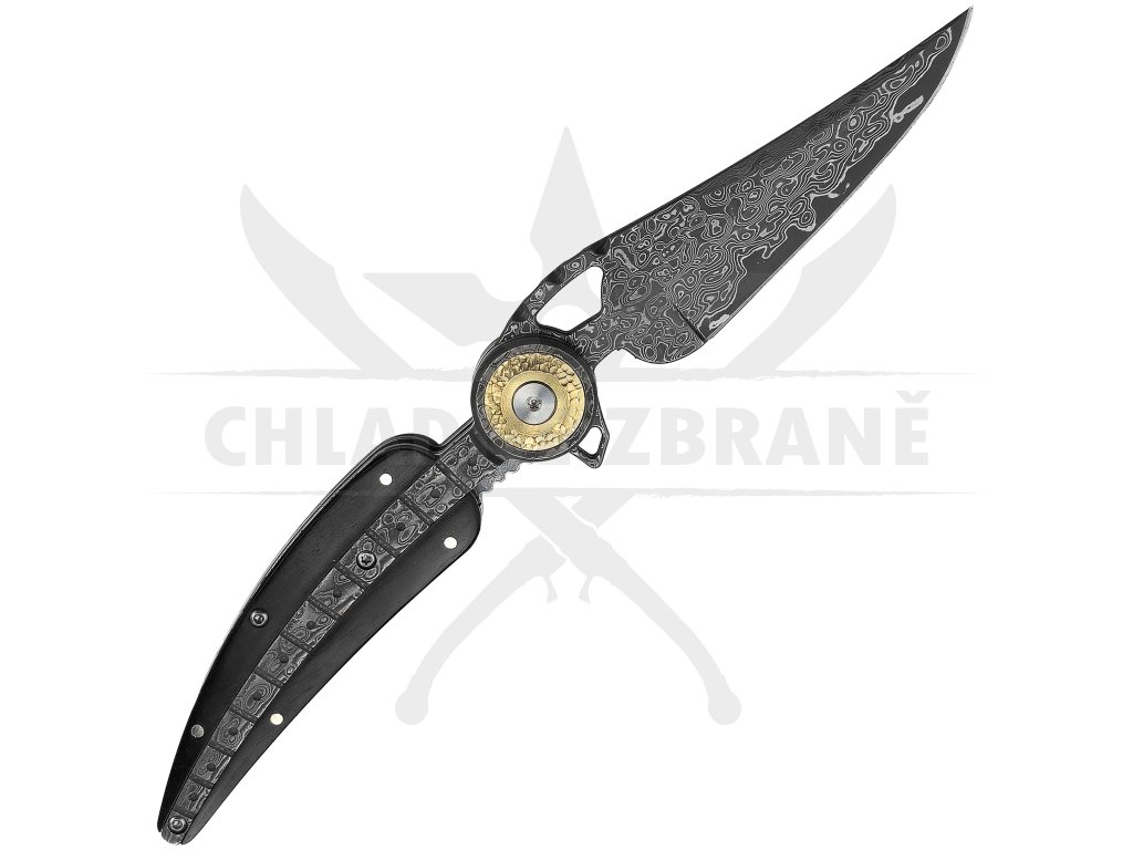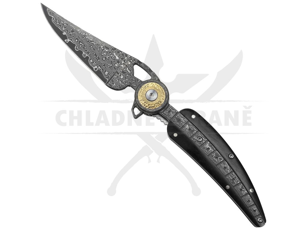 | Materiál: | Překládaná ocel, eben, mosaz, umělá kůže |