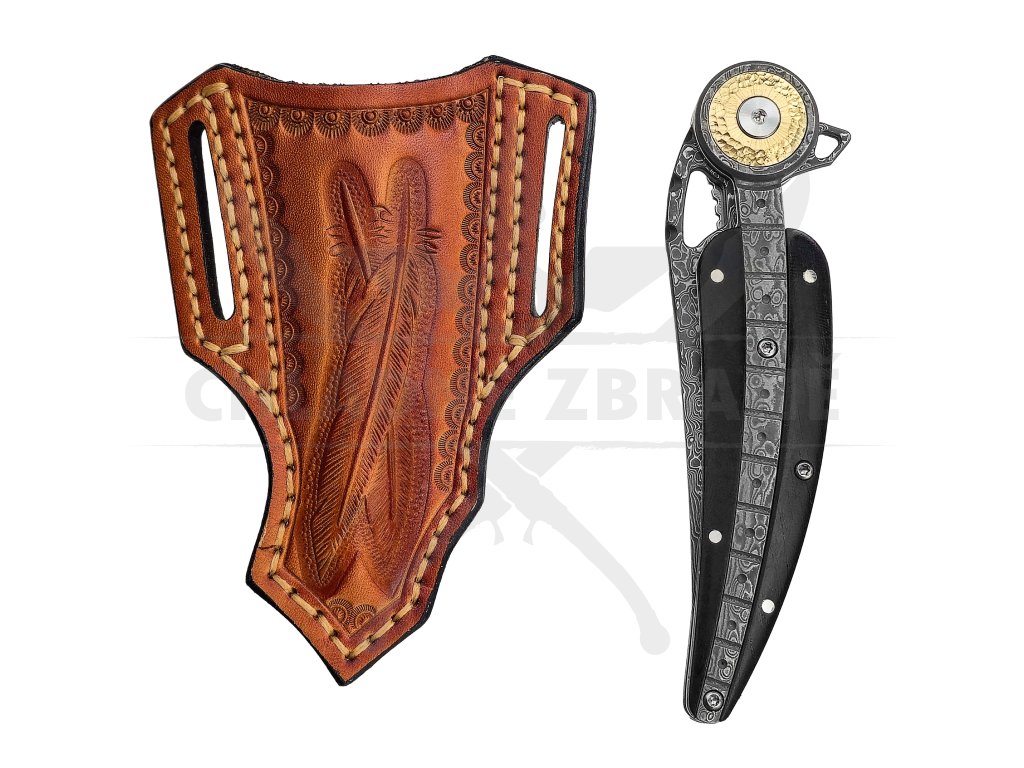 Zavírací nerezový damaškový nůž "SPIRIT FEATHER" s pouzdrem na opasek