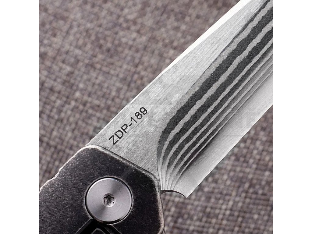 | Materiál: | Ocel ZDP-189 (17 vrstev), slitina titanu, kůže |