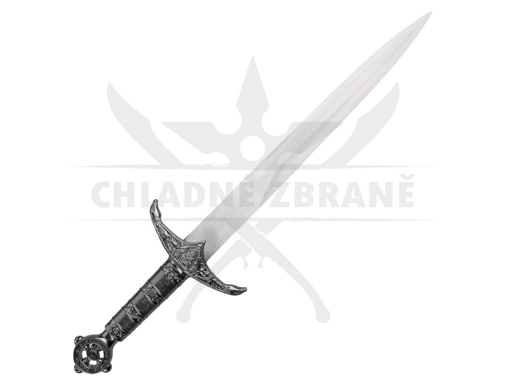 Čepel o délce 20 cm je vyrobena z nerezové oceli, která dodává celku realistický lesk a pevnost. Rukojeť i záštita jsou z kvalitního plastu s kovovým vzhledem a bohatým zdobením – nechybí rytiny ani dekorativní ornamenty, které odkazují na dobu Robina Hooda. Dýka je doplněna pochvou v černém lesklém provedení se zdobným kovovým hrdlem a koncovkou.