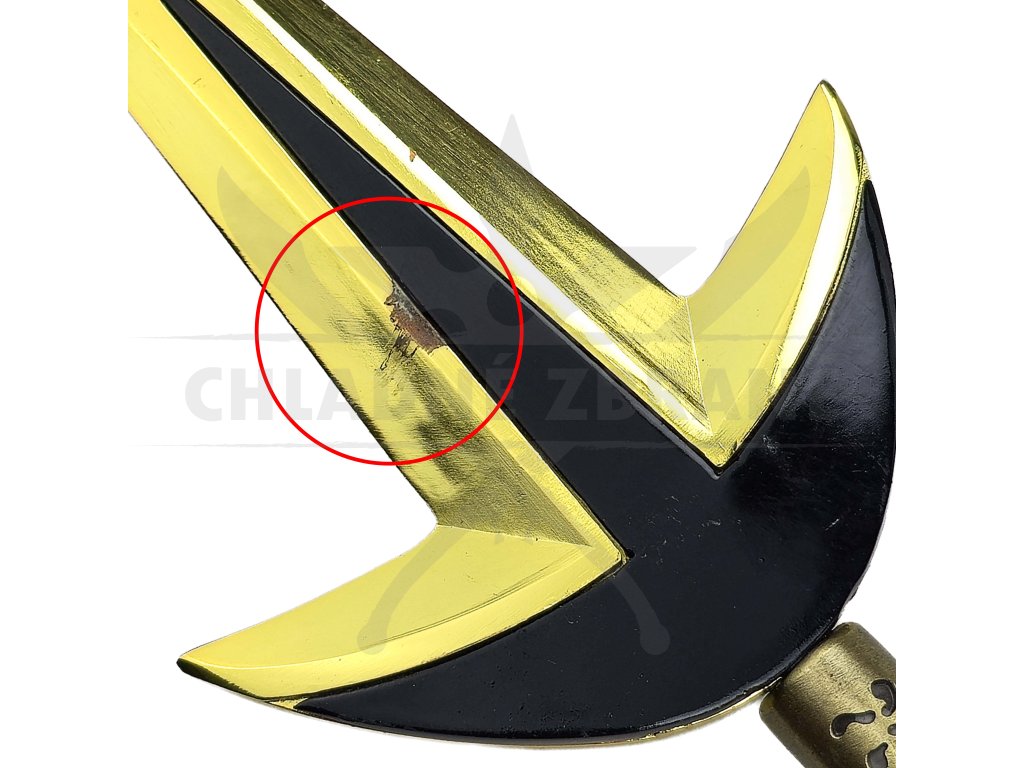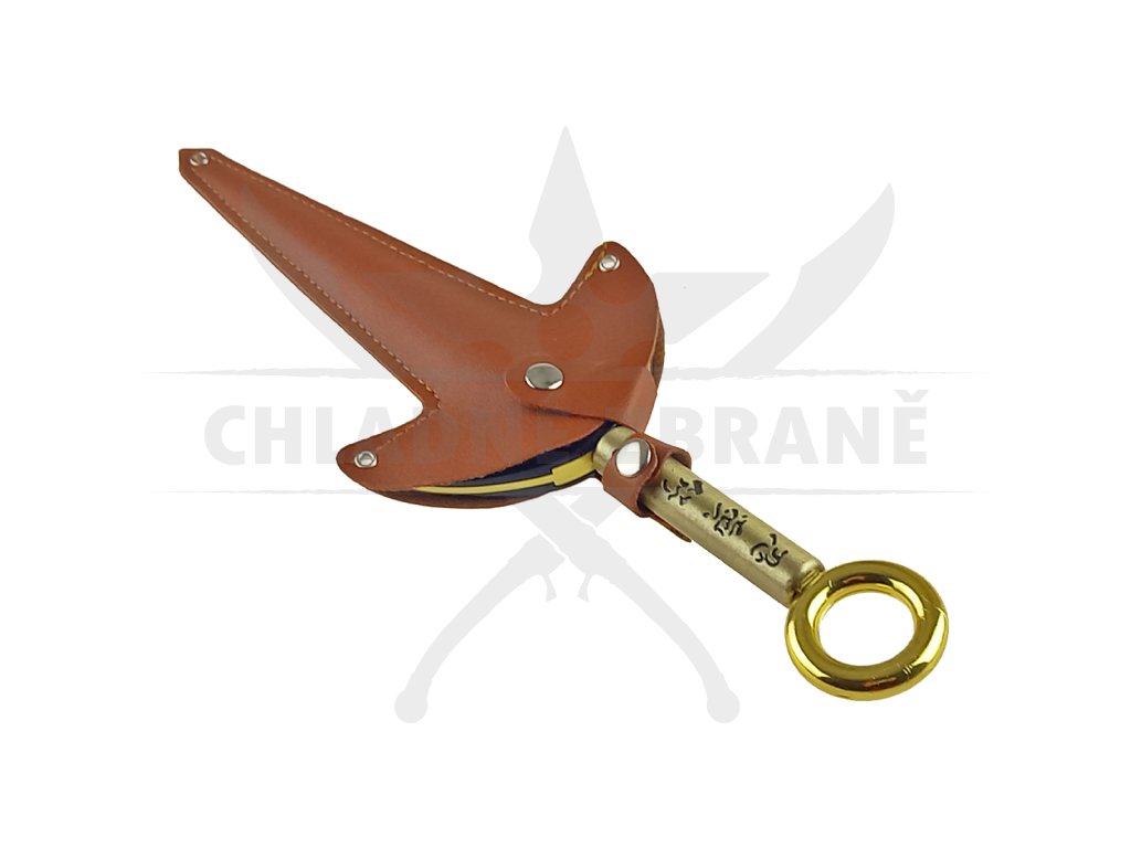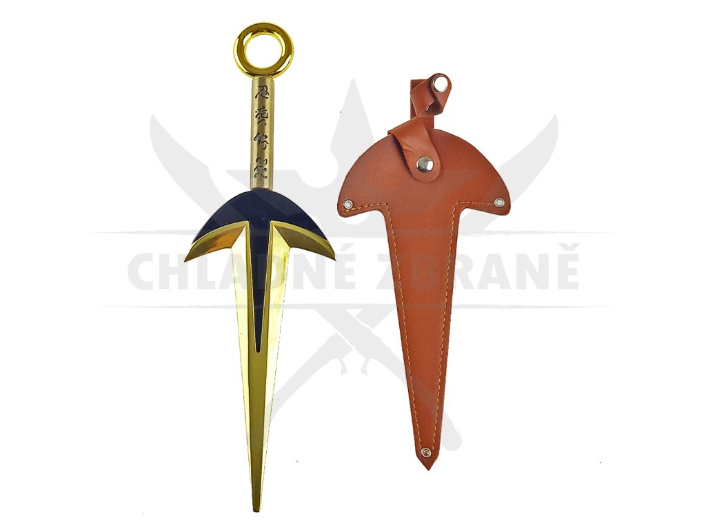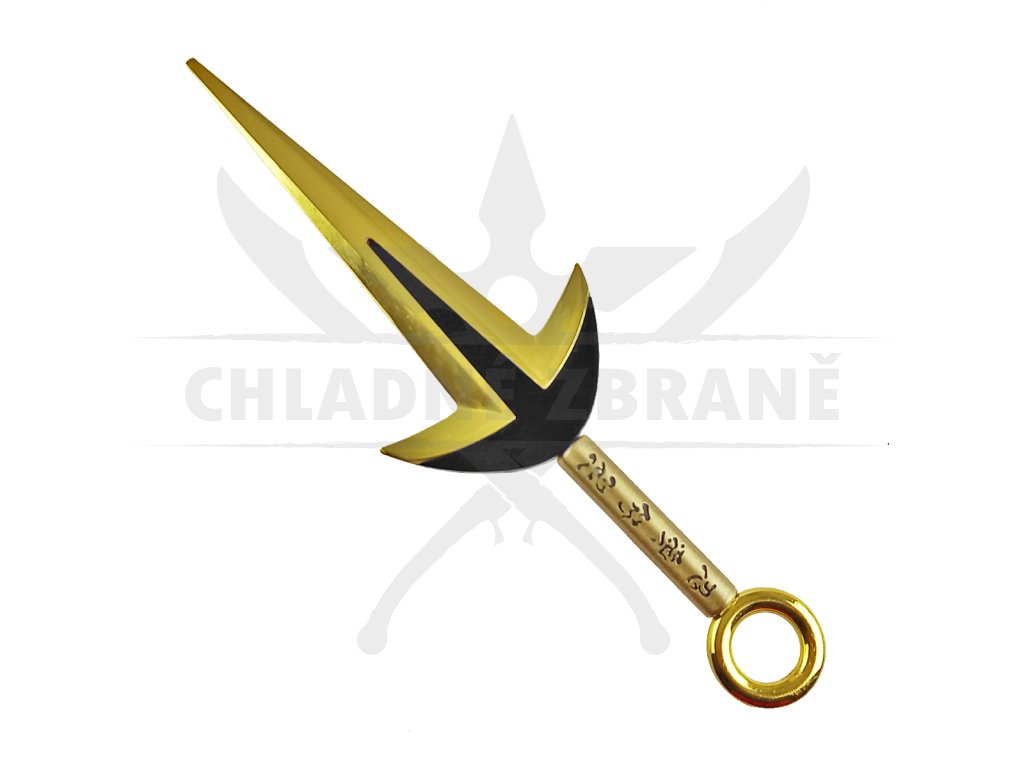 Váha Kunaie je přesně 302 gramů a nejedná se o žádný perořízek. Celý povrch nože je pozlacen, což mu dodává velice stylový look, který Vás na 100% zaujme. Na rukojeti najdeme totožné znaky, které jsou i na originálním kusu. Rukojeť je zakončena kruhem o průměru 2,3 cm. Díky tomuto kruhu můžete s kunaiem dělat nějaké ty cool tríčky. Součástí nože je také pevné pouzdro z eko kůže.